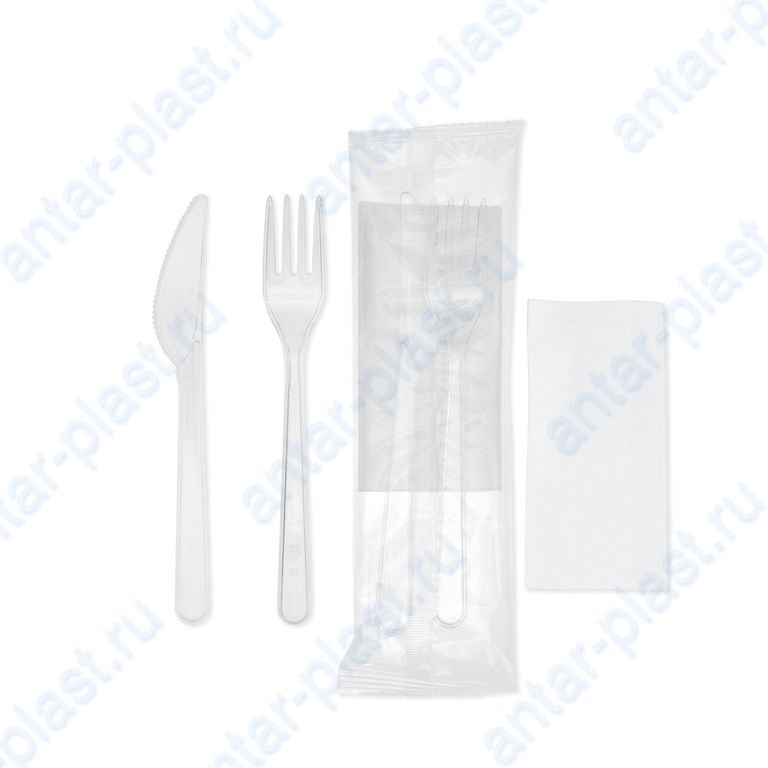 Комплект №3 (вилка прозрачная, нож прозрачный, салфетка белая)