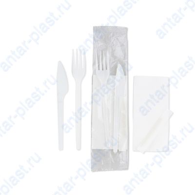 Комплект №4 ЭКОНОМ (вилка белая, нож белый, зубочистка, салфетка белая)