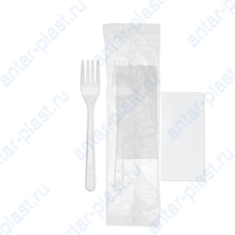 Комплект №2 (вилка прозрачная, салфетка белая)