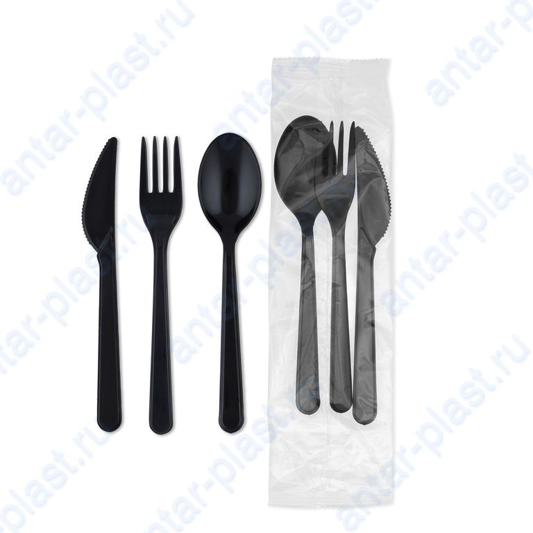 Комплект №3 (вилка черная, нож черный, ложка черная)