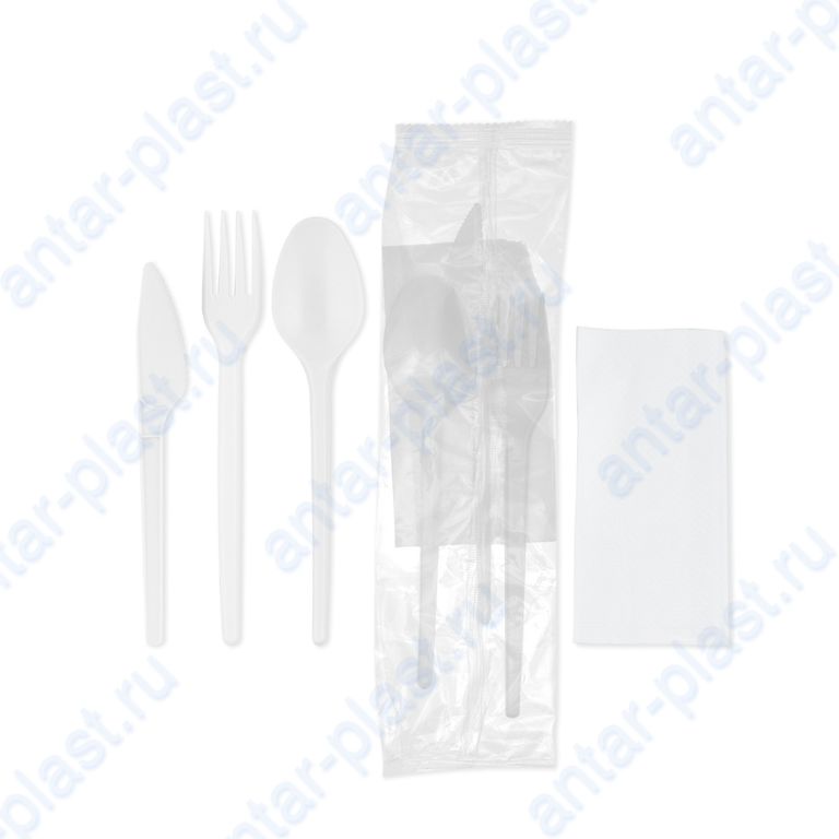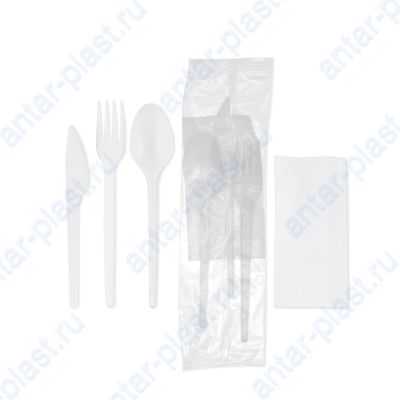 Комплект №4 ЭКОНОМ (вилка белая, нож белый, ложка белая, салфетка белая)